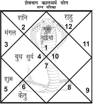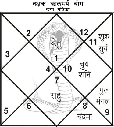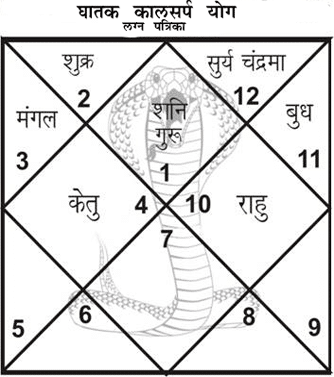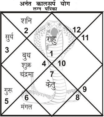 Kalsarp Dosh Nivaran is formed when all the planets are situated between Rahu & Ketu. When all the planets are hemmed between Rahu and Ketu i.e., the moon’s north node and the moon’s south node Kalsarp Yog is formed. Complete Kalsarp Yog is formed only when half of the chart is unoccupied by planets